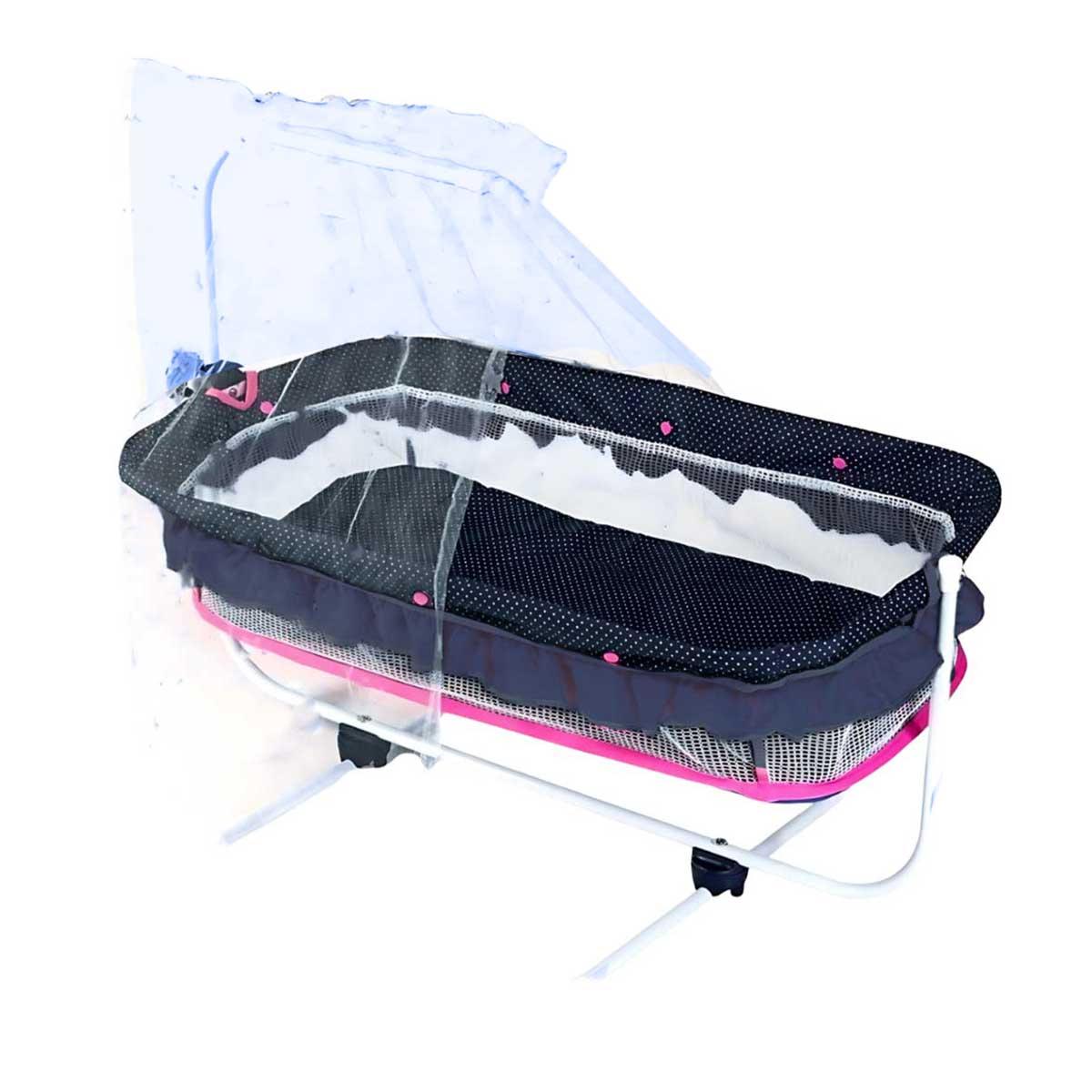 Ele é dobrável, em material leve e de fácil manuseio. Um berço com detalhes iguais ao de um de verdade! Mais diversão e interação na brincadeira de faz de conta!