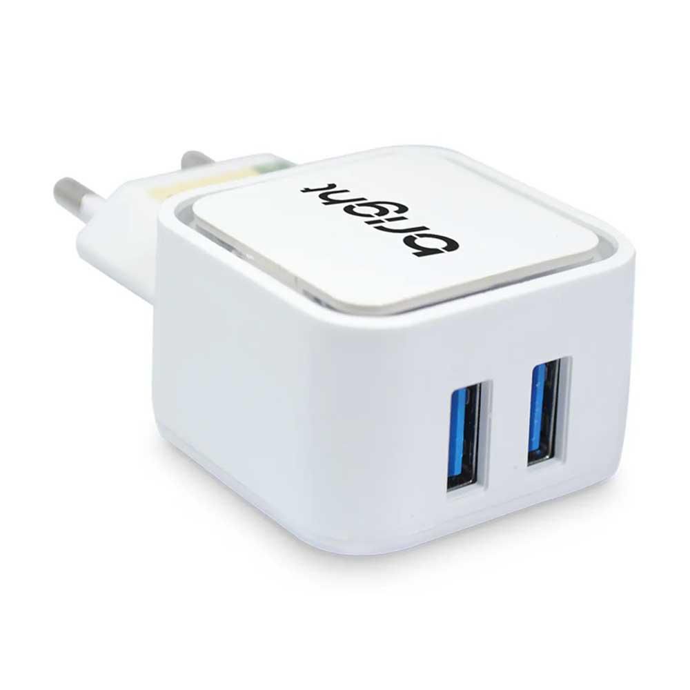 Carregador de parede universal com 2 entradas USB 2.0 (17W) (3.4A). Carregar até 2 dispositivos ao mesmo tempo ficou mais fácil com o Carregador Ultra Rápido Bright AC589, basta conectar seu carregador na tomada e em seu dispositivo e pronto, terá a bateria carregada de forma prática e rápida.