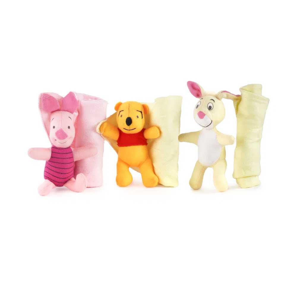 Minhas Naninhas Baby Pooh é um kit composto com 3 naninhas que podem ser usadas pelo bebê na hora de dormir ou para decorar o carrinho ou berço, sendo que cada naninha é presa a um personagem da turma do Pooh: Ursinho Pooh, Leitão e Abel. É a companhia ideal para o(a) pequeno(a) na hora daquele soninho tranquilo!