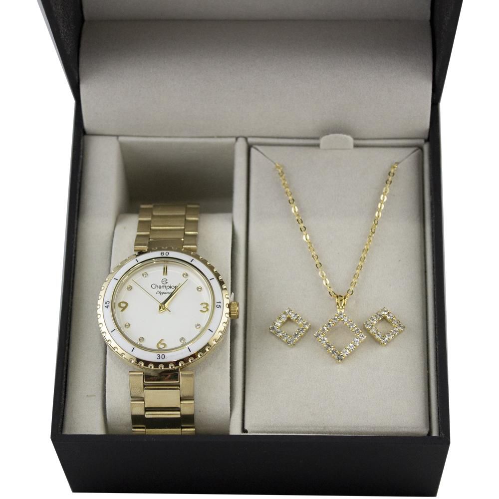Kit Relógio Feminino Champion Analógico CN25270W - Dourado
