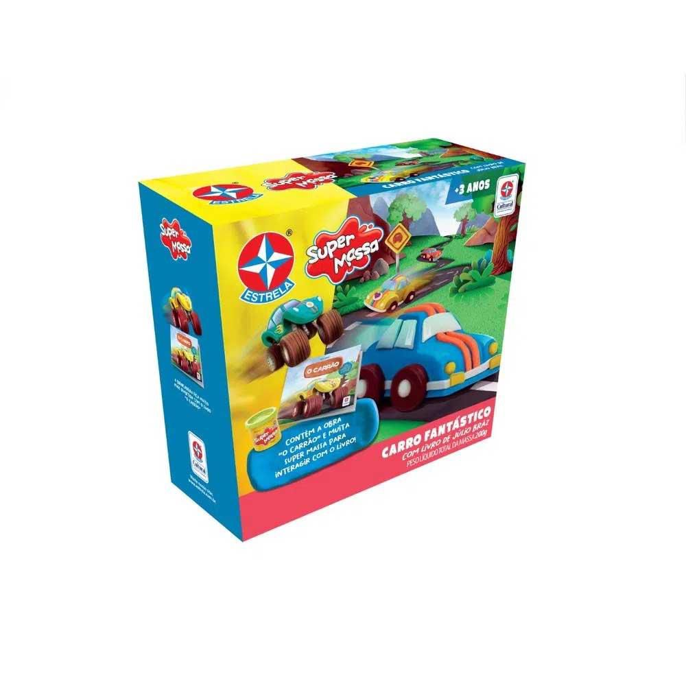 A super massa carros fantástico vem com um super carro para a criança aplicar adesisvos e customiza-ló e dentro vem 4 diferentes moldes de carros para a criança criar o seu próprio carrinho de super massa e fazer uma divertida corrida de carrinhos! acompanham 4 potes de super massa de 50g cada e 1 faca plástica. o produto ainda vem com um livro de 24 páginas com o tema "carros" para a criança interagir com super massa. produto indicado para crianças a partir de 3 anos.