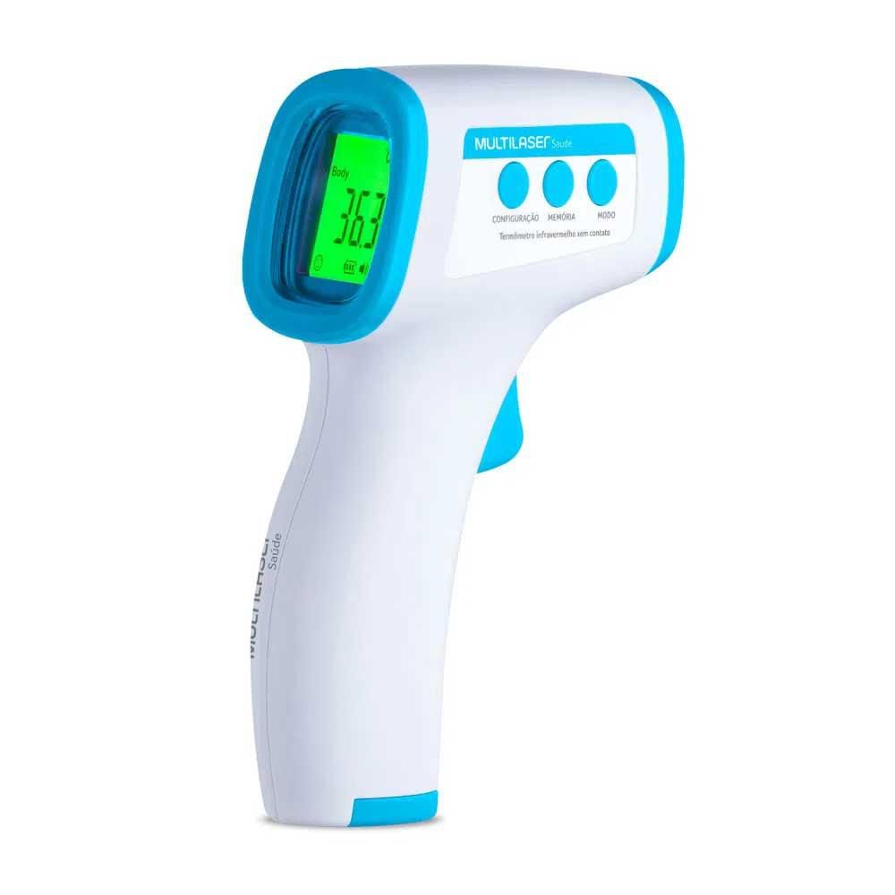 Multilaser Infravermelho é um termômetro sem contato, com capacidade de aferir temperatura tanto de objetos quanto de seres humanos.