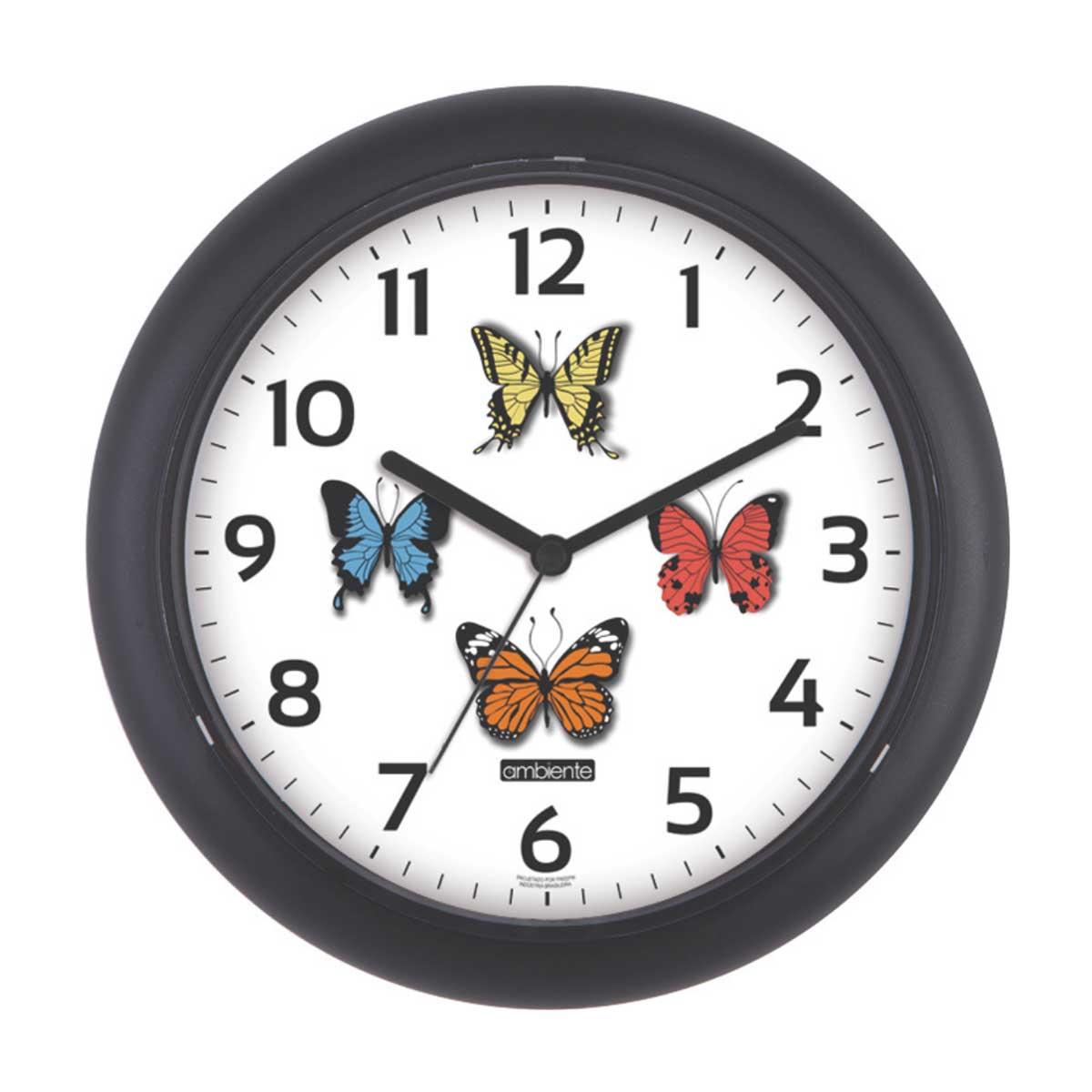Relógio de Parede Ambiente 25cm Borboletas 198000-034 Preto